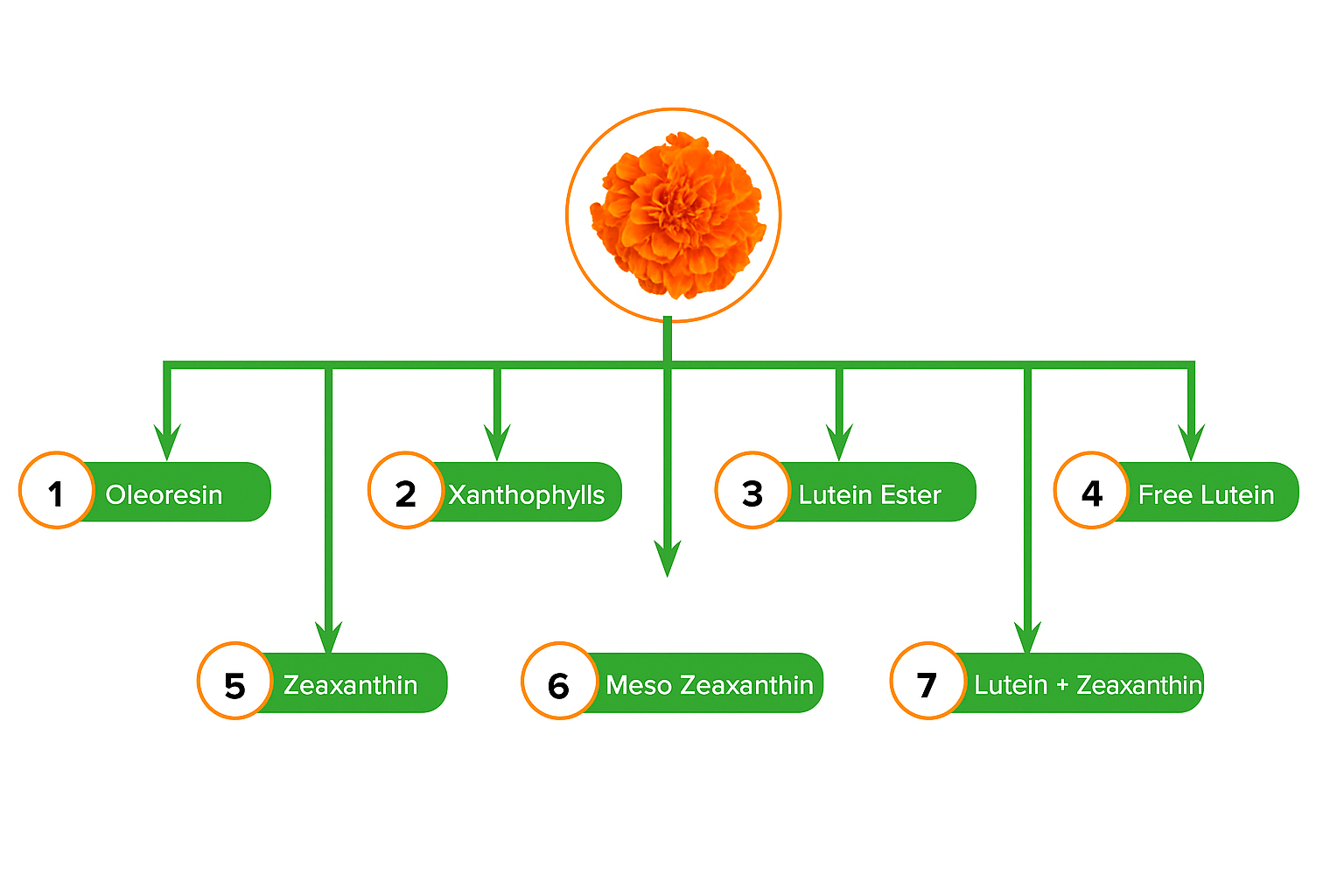 Premium marigold extracts with varying Lutein and Zeaxanthin concentrations, tested by GV & HPLC for purity and quality.